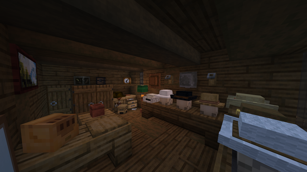 A detailed Minecraft Wild West Hatter shop, owned by M.Bells.
