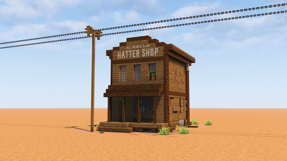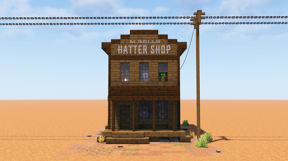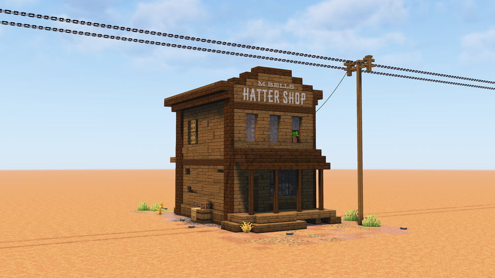 A detailed Minecraft Wild West Hatter shop, owned by M.Bells.