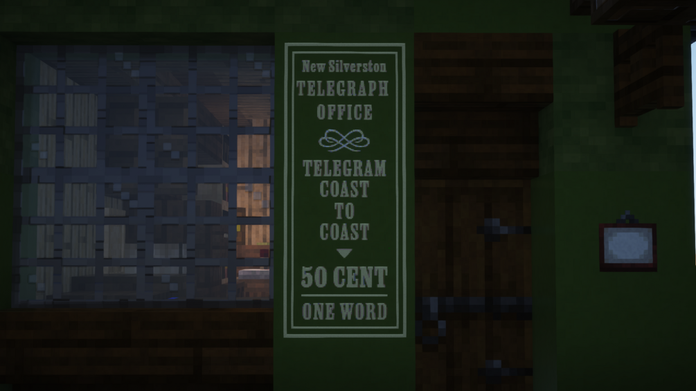 A detailed Minecraft wild west Telegraph Office. Operated by Western Union Company.