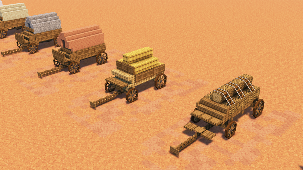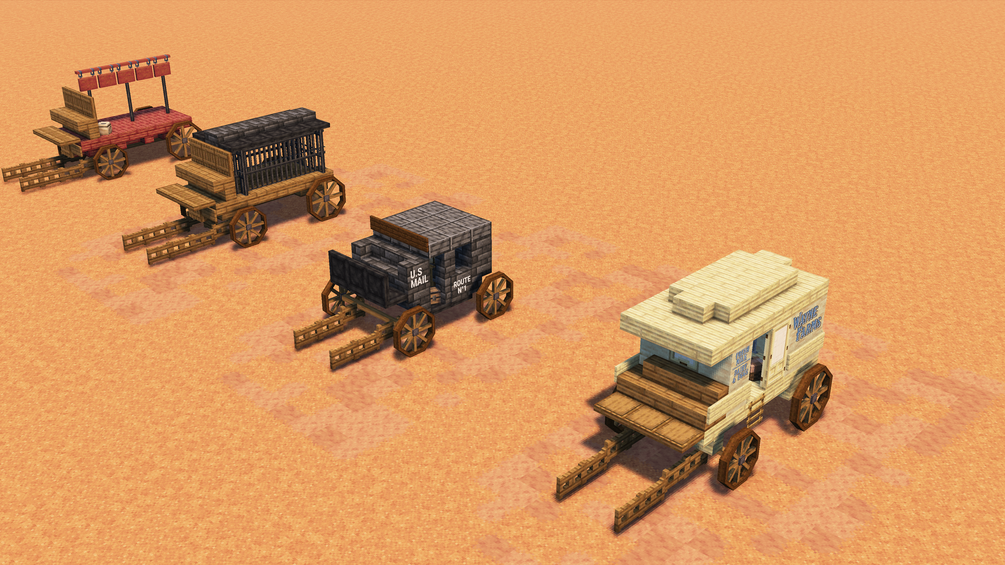 Some detailed wagons, stagecoaches and carts to use in your Wild West themed world.