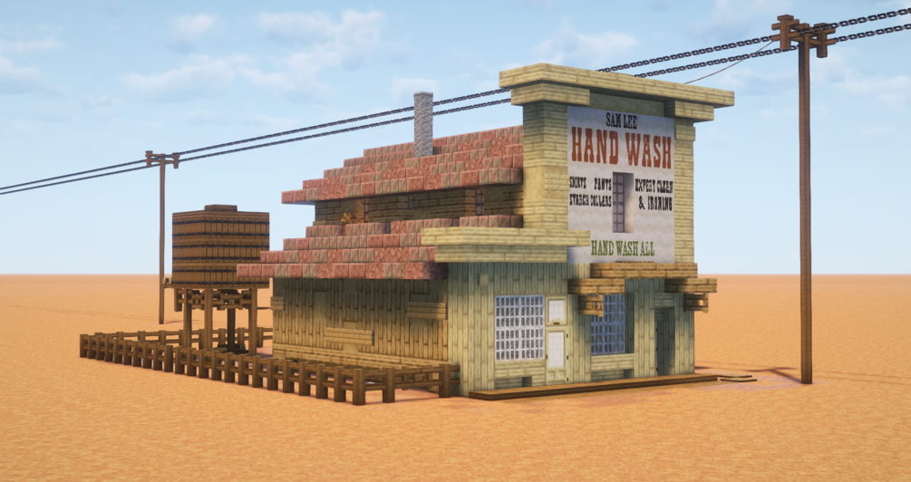 A detailed Minecraft Wild West Laundry. Sam Lee's Landry - HAND WASH