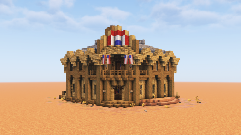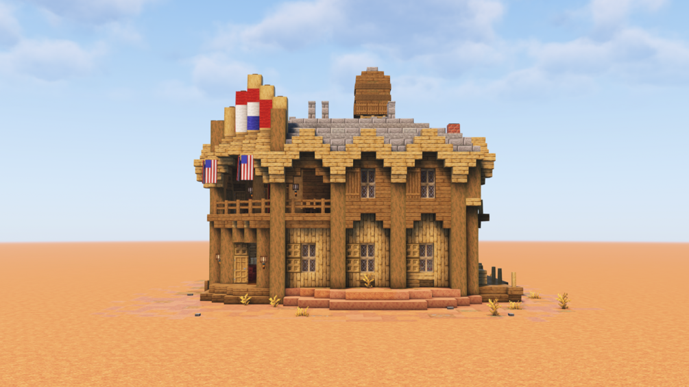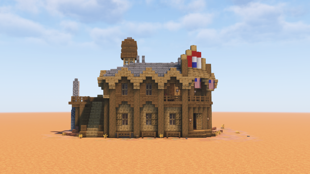 A detailed Minecraft wild west Hotel. The Pioneer Hotel ! Rooms for rent and hot Bath.