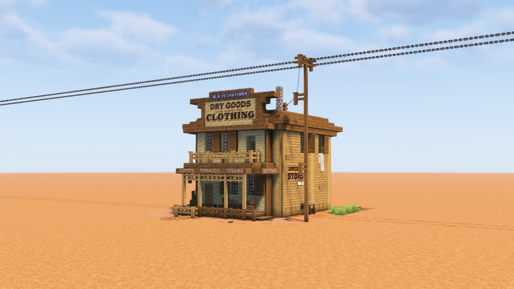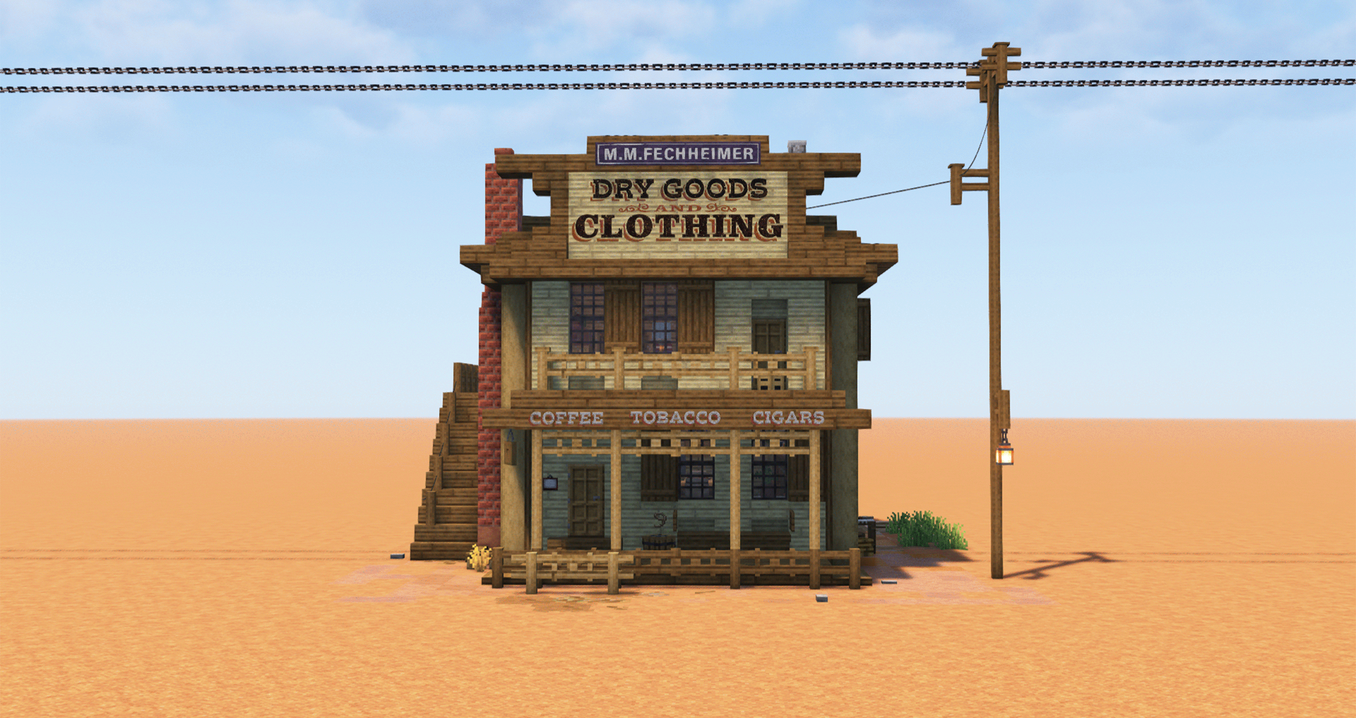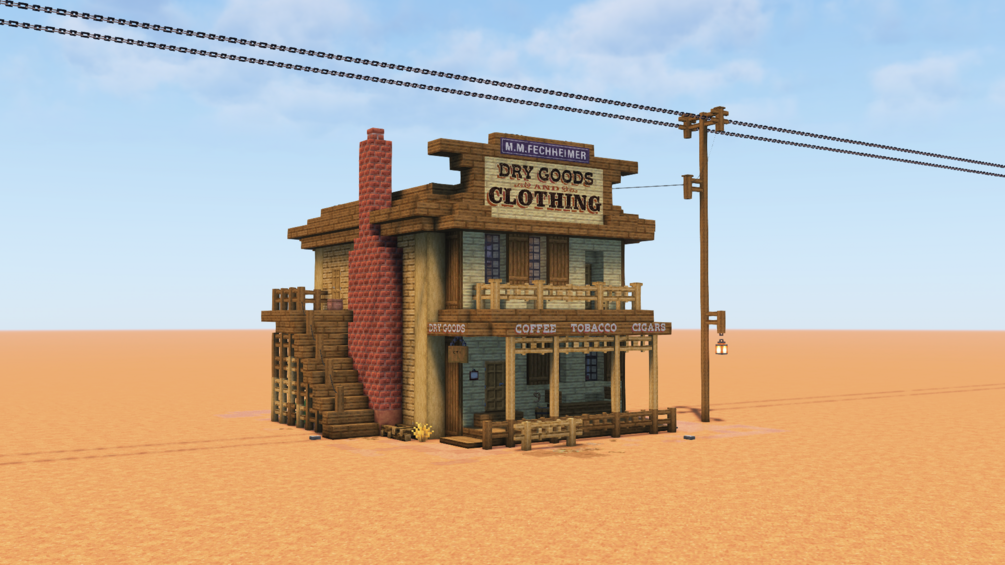 A detailed Minecraft Wild West General Store, owned by M.M Feicheimer.